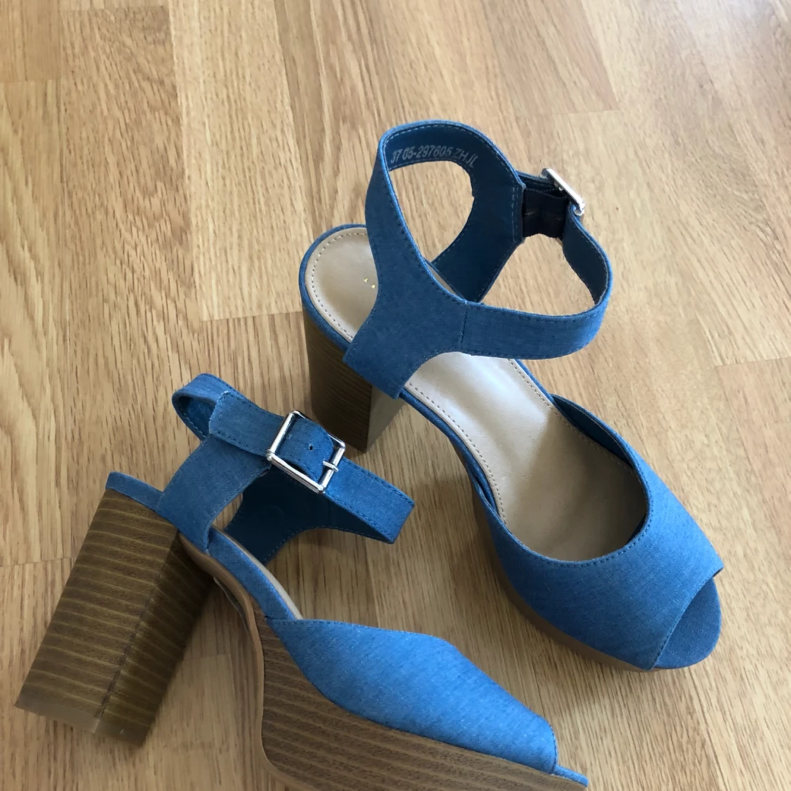 Helt nya oanvända klackar från DinSko. Träklack med snygg denim färg. Sjukt sköna att gå i.