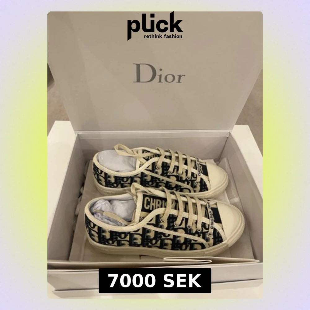 Säljer ett par Dior sneakers med beige och marinblått mönster. andvänd 2 gånger och måste bli av med dom. Pris kan sänkas vid snabbköp