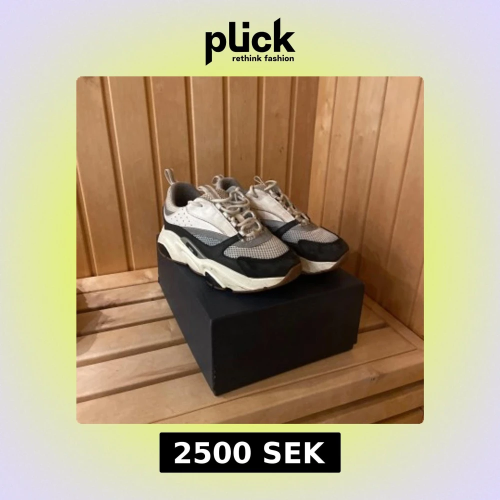 Säljer ett par chunky sneakers från Dior i grått, vitt och svart med meshdetaljer och kraftig sula. Skorna har snörning och coola kontraster mellan material och färger. Perfekta för dig som gillar statement sneakers och exklusiv streetstyle.