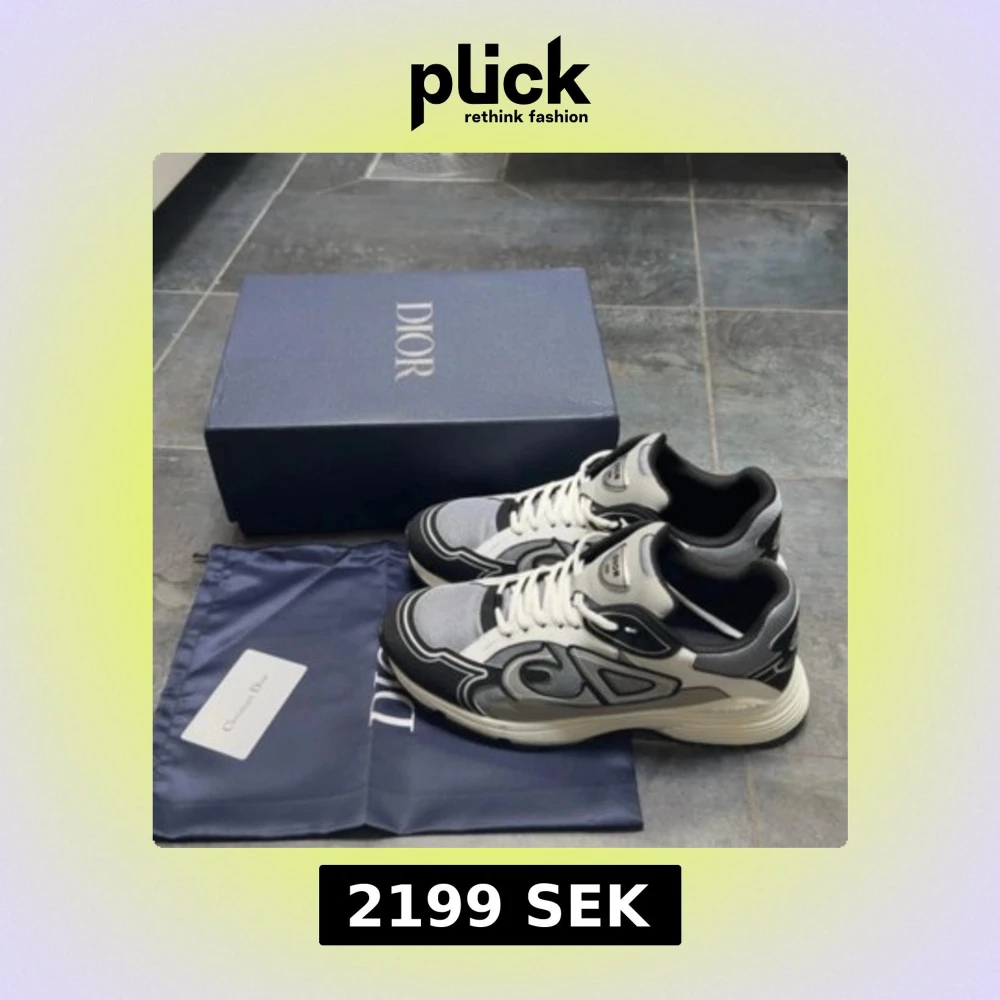 Snygga Dior sneakers med coola detaljer i svart, grått och vitt. Skorna har tydliga CD-loggor på sidan och hälen, meshpaneler och skinnpartier. Klassisk snörning och chunky sula ger en modern vibe. Perfekta för dig som vill sticka ut med exklusiva sneakers.