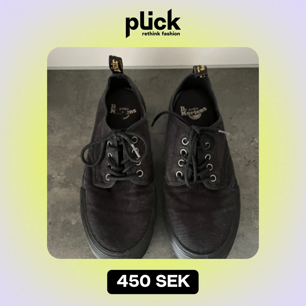 Storlek 42. Använda en del men har fortfarande mycket kvar att ge. Tyg utsida helt, undersula hel, bara lite sliten. Det enda att anmärka är att tyg på innersula lossnar i kanterna, se bild 3. Köpta för 899:- på Hepcat Store i Lund.