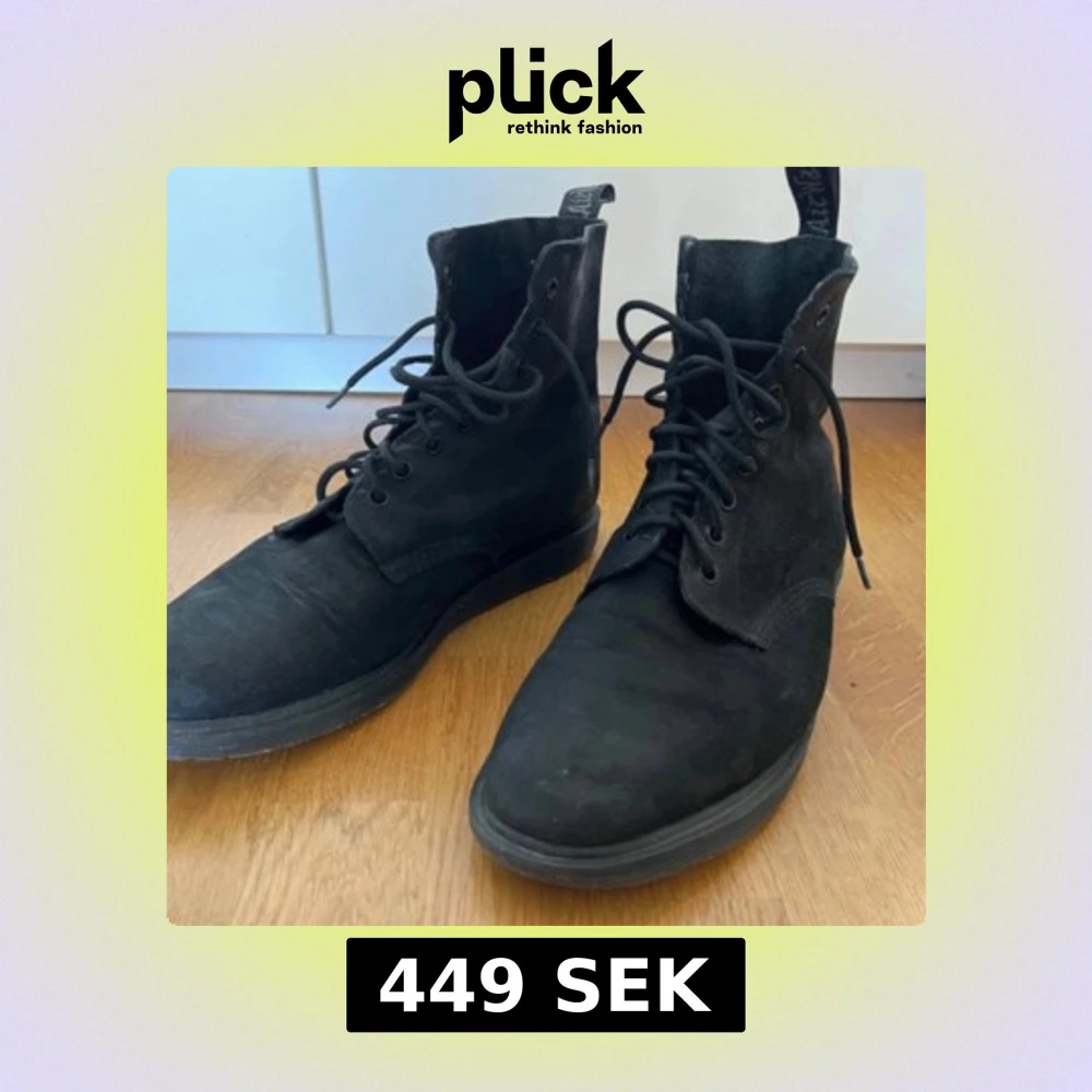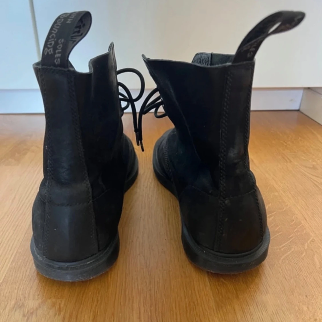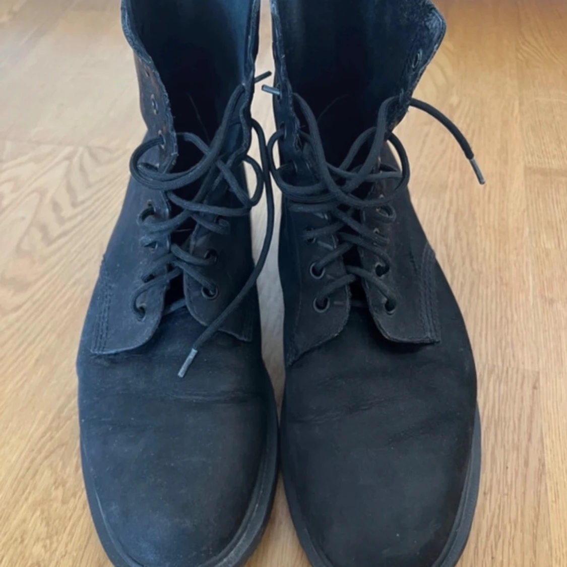 Säljer ett par svarta boots från Dr. Martens med klassisk snörning och rund tå. Perfekt för alla tillfällen. Använda men fortfarande i bra skick. Model: Whitton 8 Eye, dyra vid nyköp.