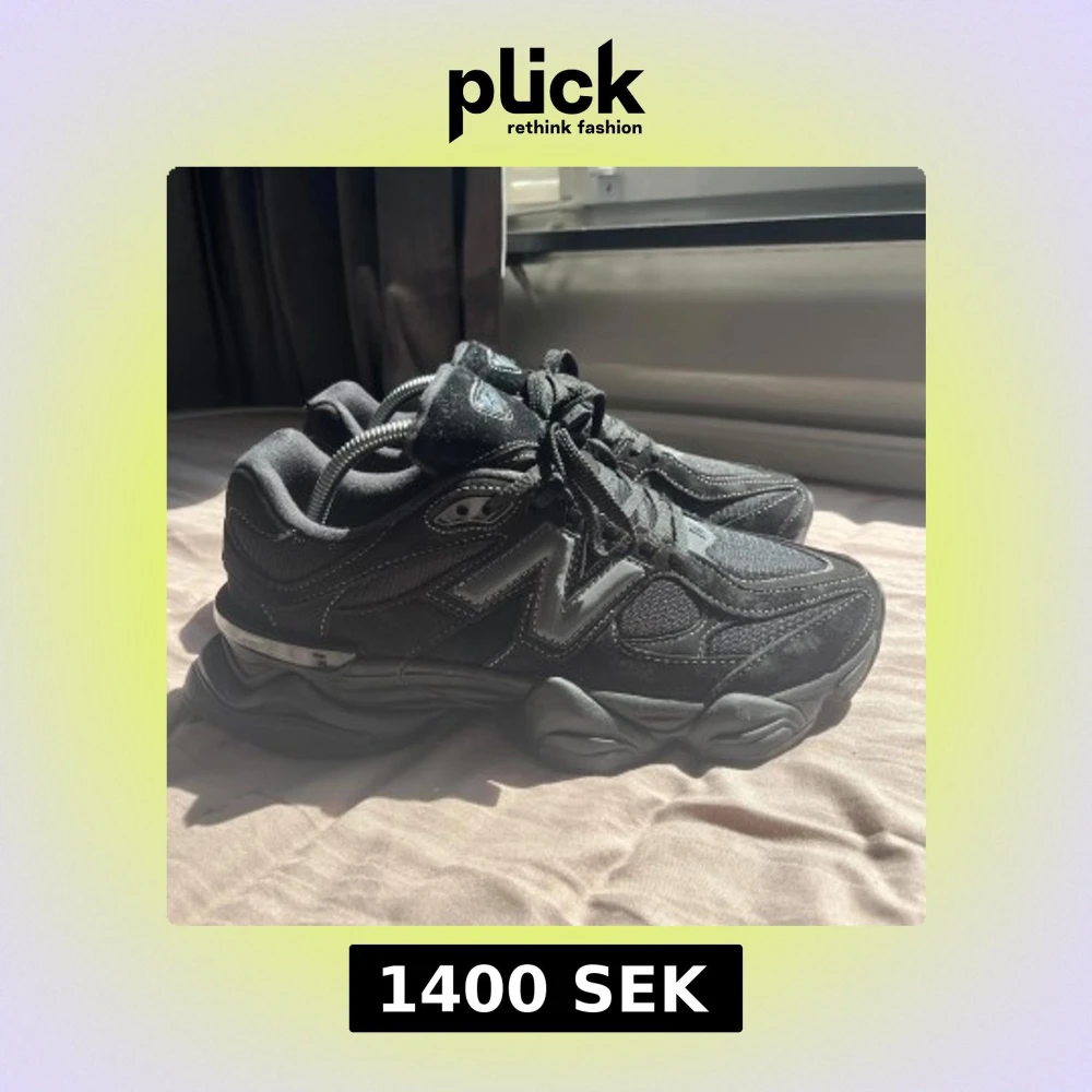 Säljer ett par helt nya svarta New Balance 9060 sneakers med chunky sula och coola detaljer. Ovandelen är i mesh och mocka med reflekterande inslag och tydlig N-logga på sidan. Skorna har snörning och en futuristisk vibe som sticker ut.
