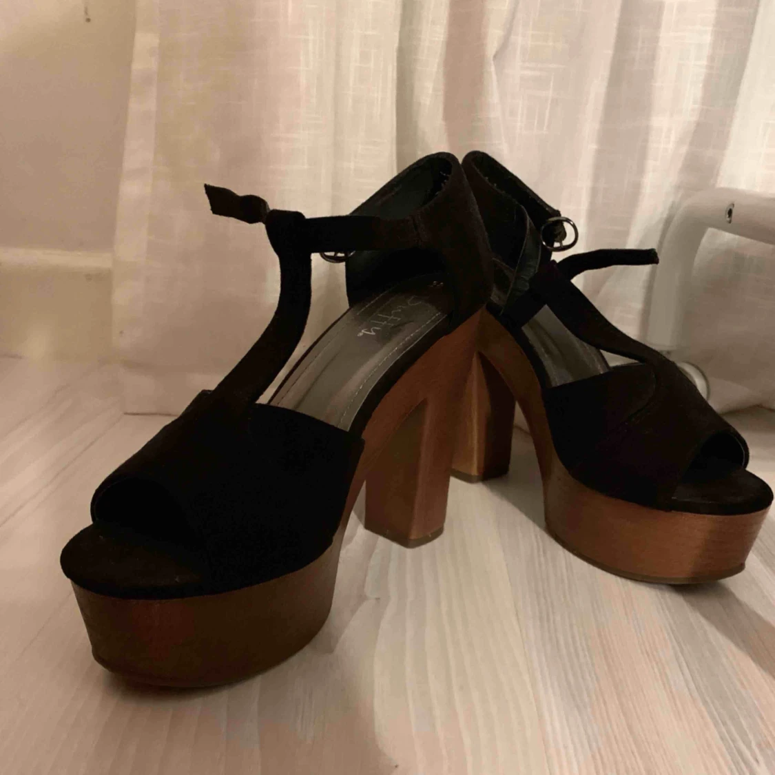 Klackskor endast använda vid ett tillfälle. Imitations mocka.