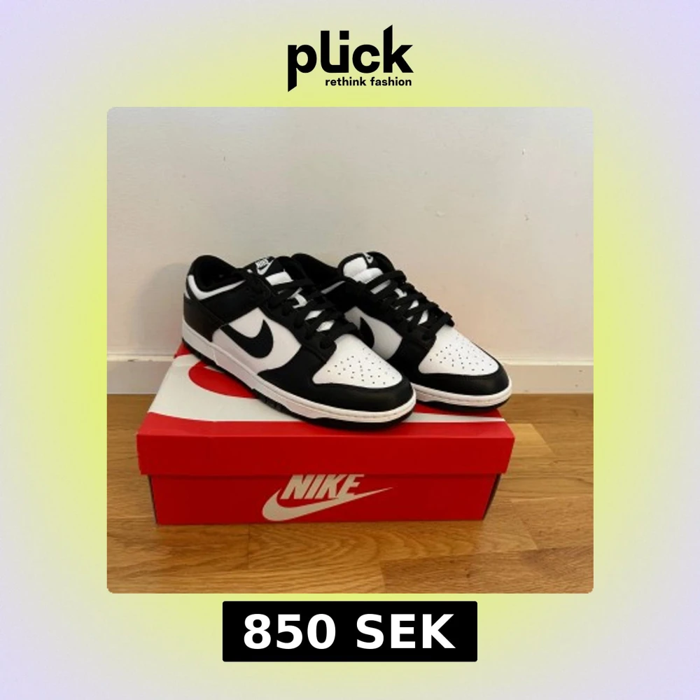 Nike Dunk Low Panda i svart och vitt skinn med klassisk låg siluett. Snygg kontrast mellan svart och vit, med svart swoosh och snörning. Perforerad tåbox för extra andningsförmåga och bekväm platt sula. Perfekta sneakers för dig som gillar stilrena och tidlösa färger. Självklart äkta. Storlek 43. Helt nya!