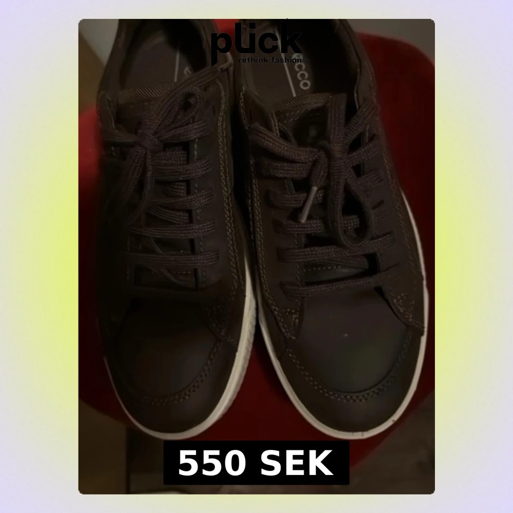 Säljer ett par bruna sneakers från Ecco med snygg vit platt sula och rund tå. Skorna har snörning och är tillverkade i skinn med diskreta sömmar och detaljer. Perfekt för dig som gillar stilrena och bekväma skor med dansk design.
