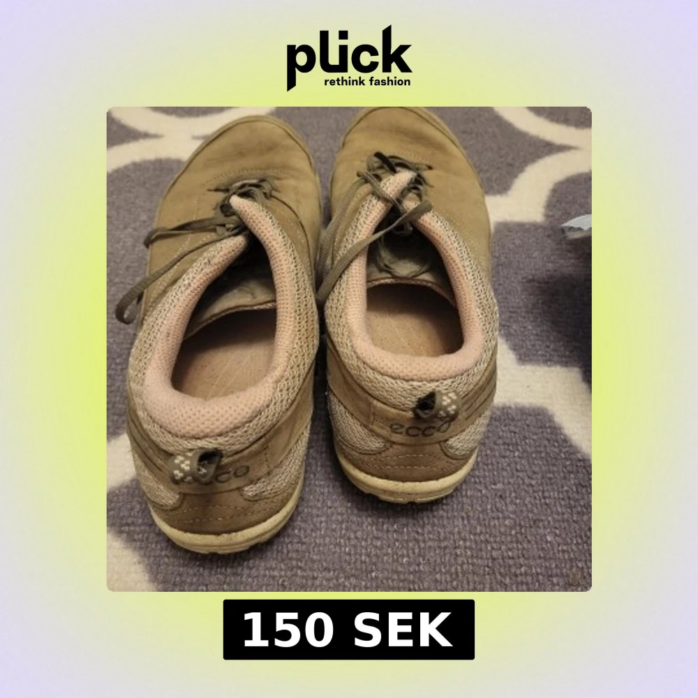 Säljer ett par bekväma beige sneakers från Ecco med snörning. Skorna har en diskret design och är perfekta för vardagsbruk. De har en mjuk insida och en slitstark sula.
