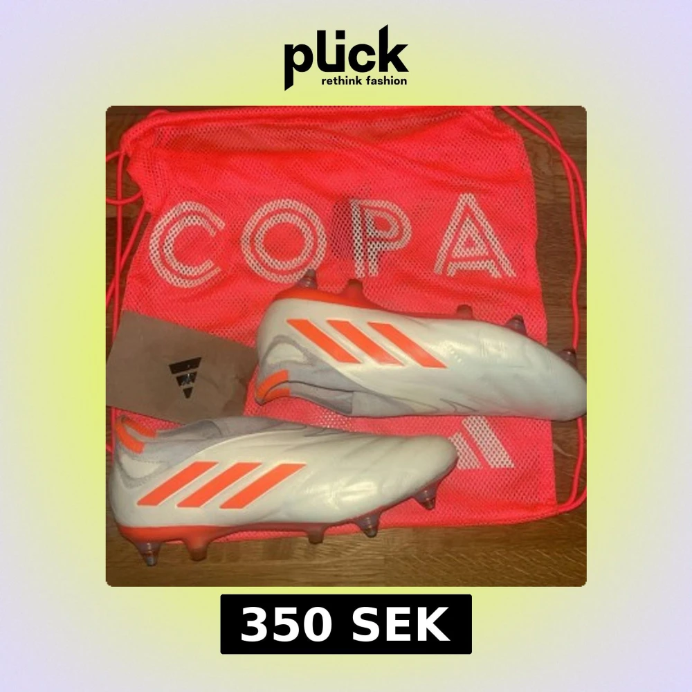 Säljer ett par Adidas Copa fotbollsskor i vitt med orange detaljer. Dem har skruvdobbar o extra skruvdobbar tillkommer är i bra skick.