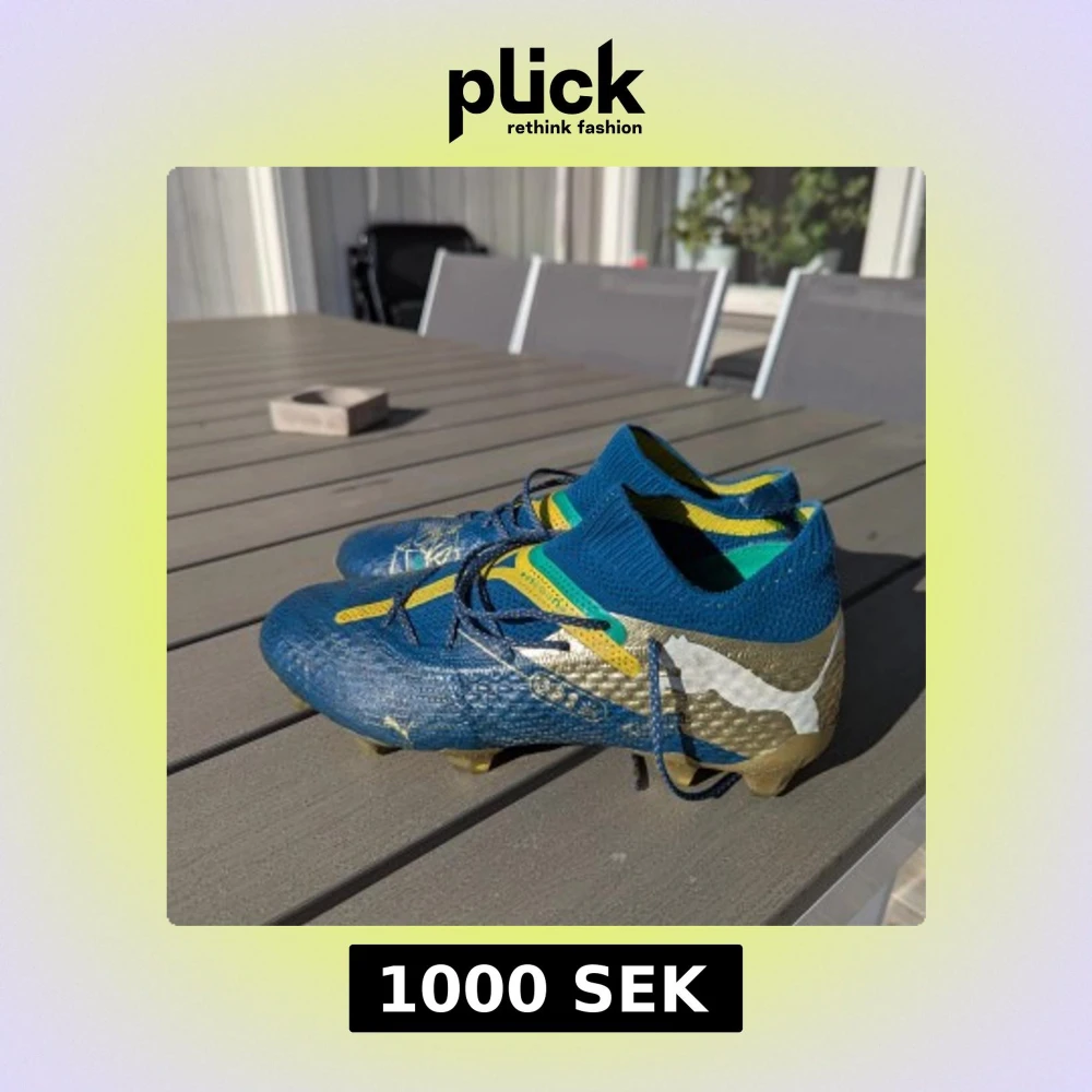 Säljer ett par sparsamt använda PUMA fotbollsskor. Jag har använt de under cirka 2 månader och växte sedan ur dem. Skicket är väldigt bra men färgen har gått bort lite på undersidan och man kan se lite lätt att de är använda.
