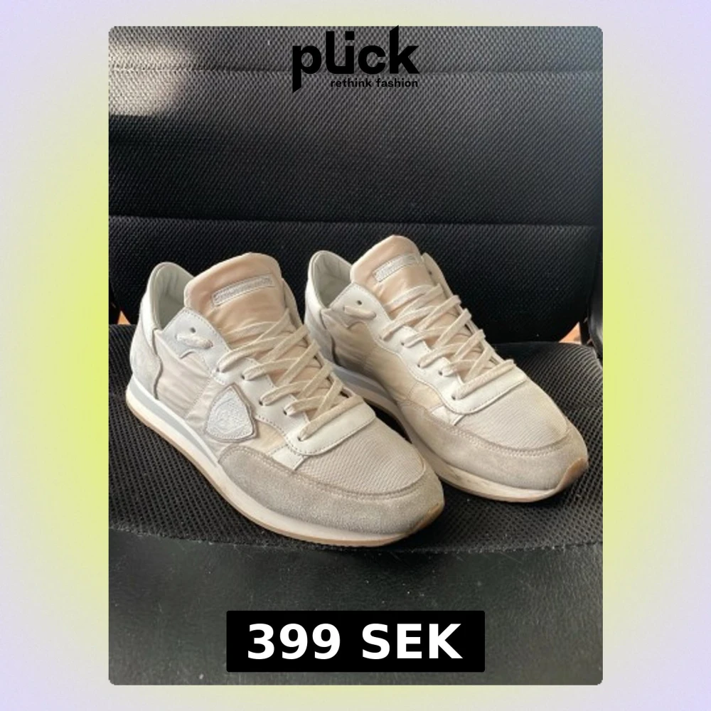 Säljer dessa eftersom de blivit för små för mig. Ett par vit/grå/beigea Philippe Model trainer skor. Storlek 41. Perfekta skor som passar en fräsch look.