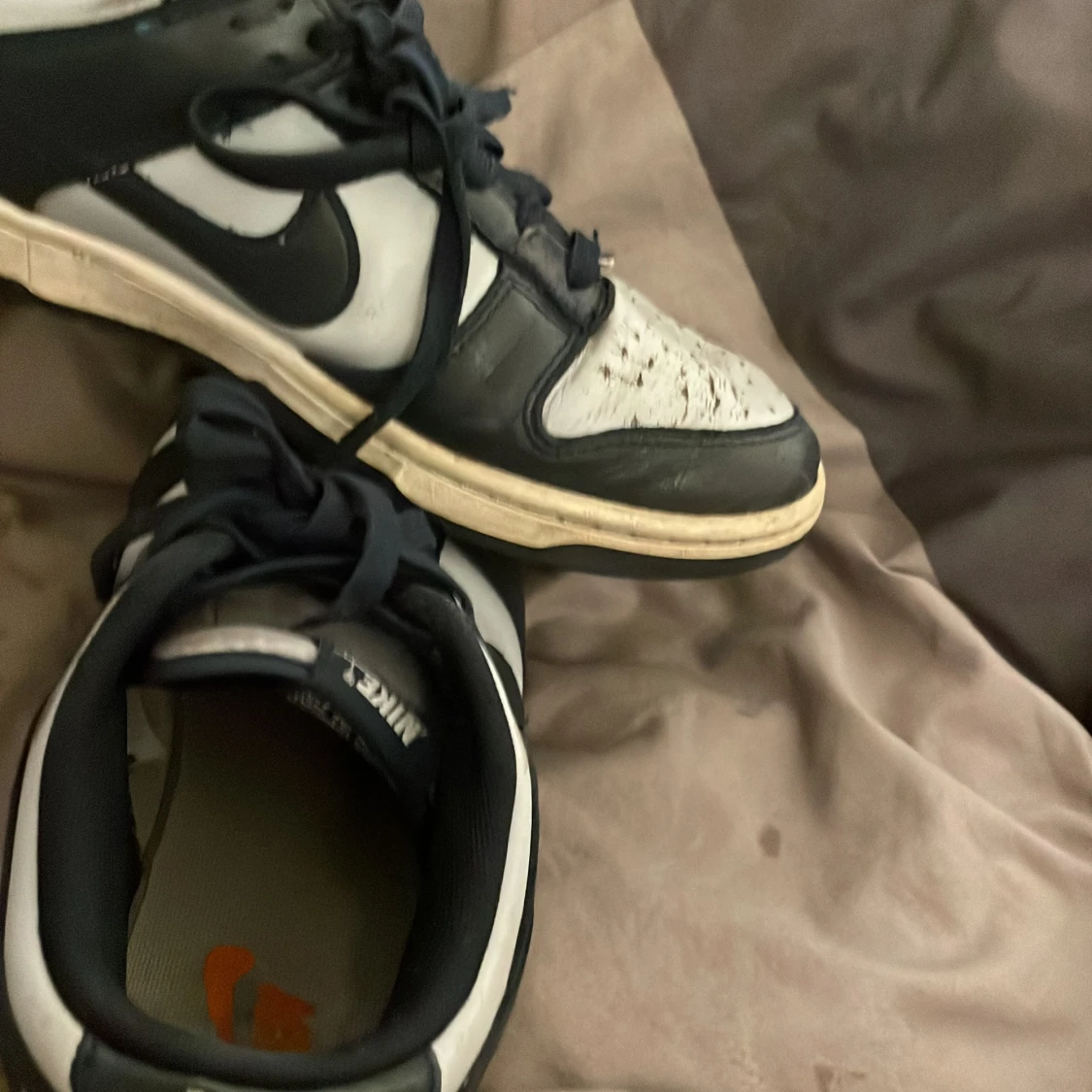 Snörerna är lite trasiga och färgen har försvunnit lite på tårna och kanten äkta köpta i footlocker/Pm för mer bilder