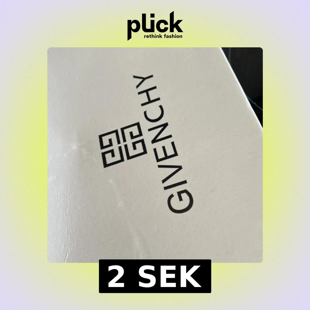 Vit skokartong från Givenchy med svart logotyp och text på locket. Perfekt för dig som vill ha en exklusiv känsla till dina skor eller behöver en snygg förvaring.