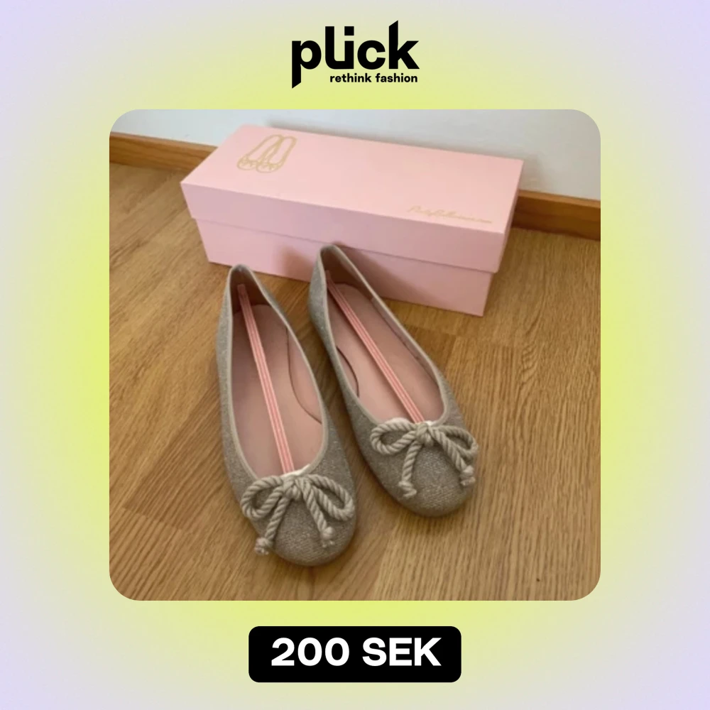Säljer ett par supergulliga ballerinaskor helt nya i glittrigt material. De är i en snygg beige färg med en söt rosett framtill. Perfekta för både vardag och fest! Kommer i en fin rosa låda. 💕