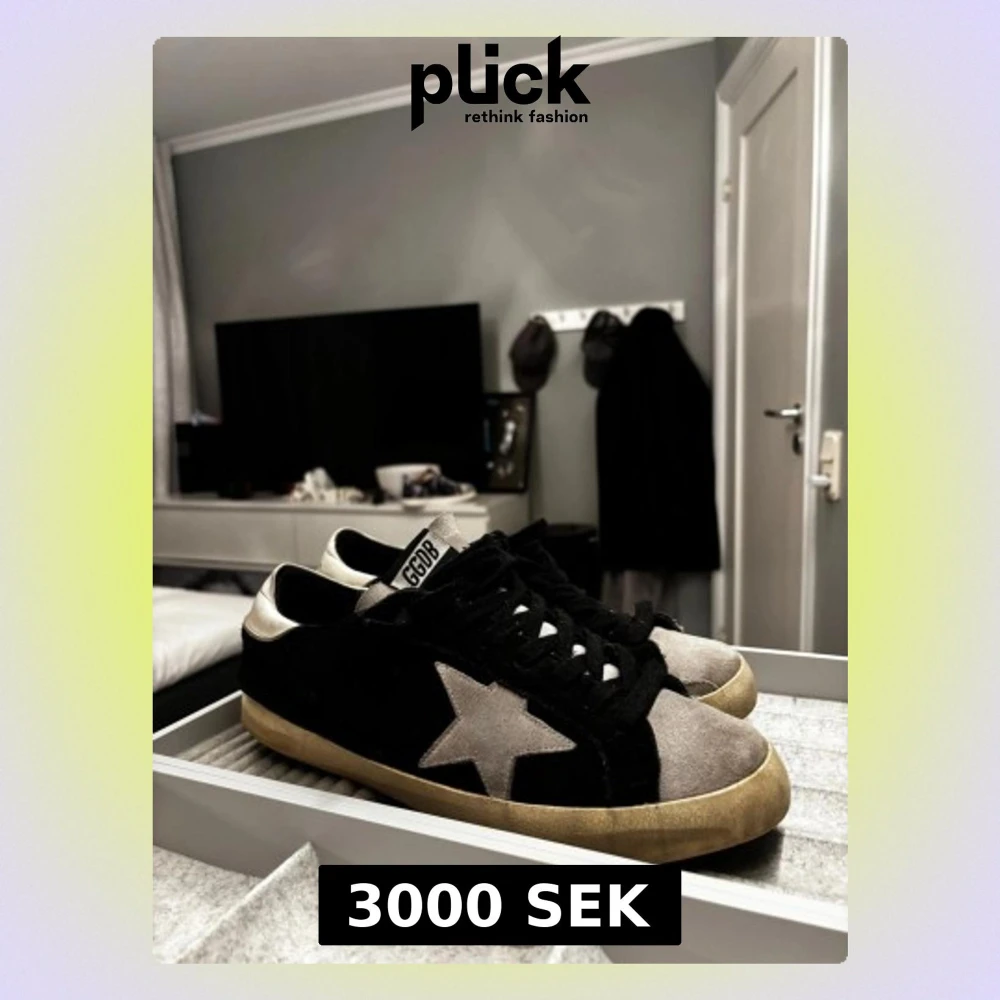 Snygga Golden goose sneakers i svart och grå mocka med en ikonisk stjärndetalj på sidan. Skorna har snörning, rund tå och en beige platt sula. Silverfärgad häl och GGDB-logga på tungan. Kommer med originalkartong och dustbag.