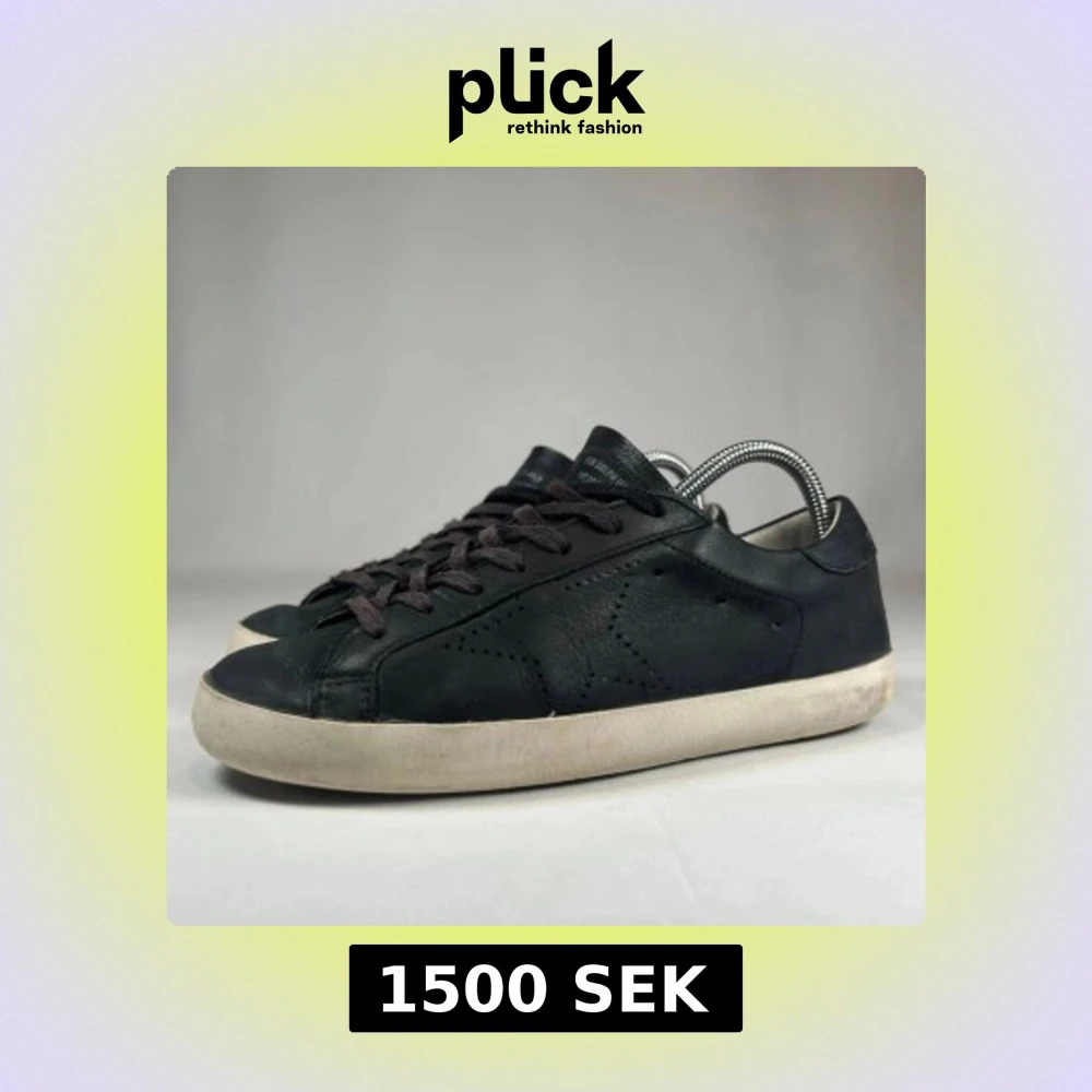 Säljer ett par svarta Golden Goose skor. Skick: 7/10, bra skick förutom sulan som är lite smutsig. Pris: 1500kr, går att pruta ned.