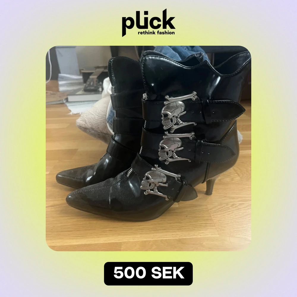 Strl: 39 Riktigt cool goth-punk ankle boots från Demonia. Gammal modell så är svår o få tag på. De har tecken på användning t.ex på klacken men inget märkbart.
