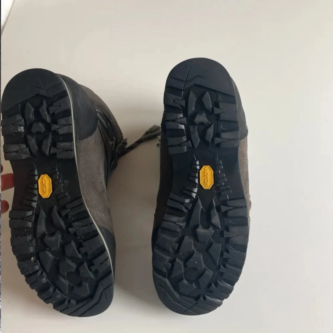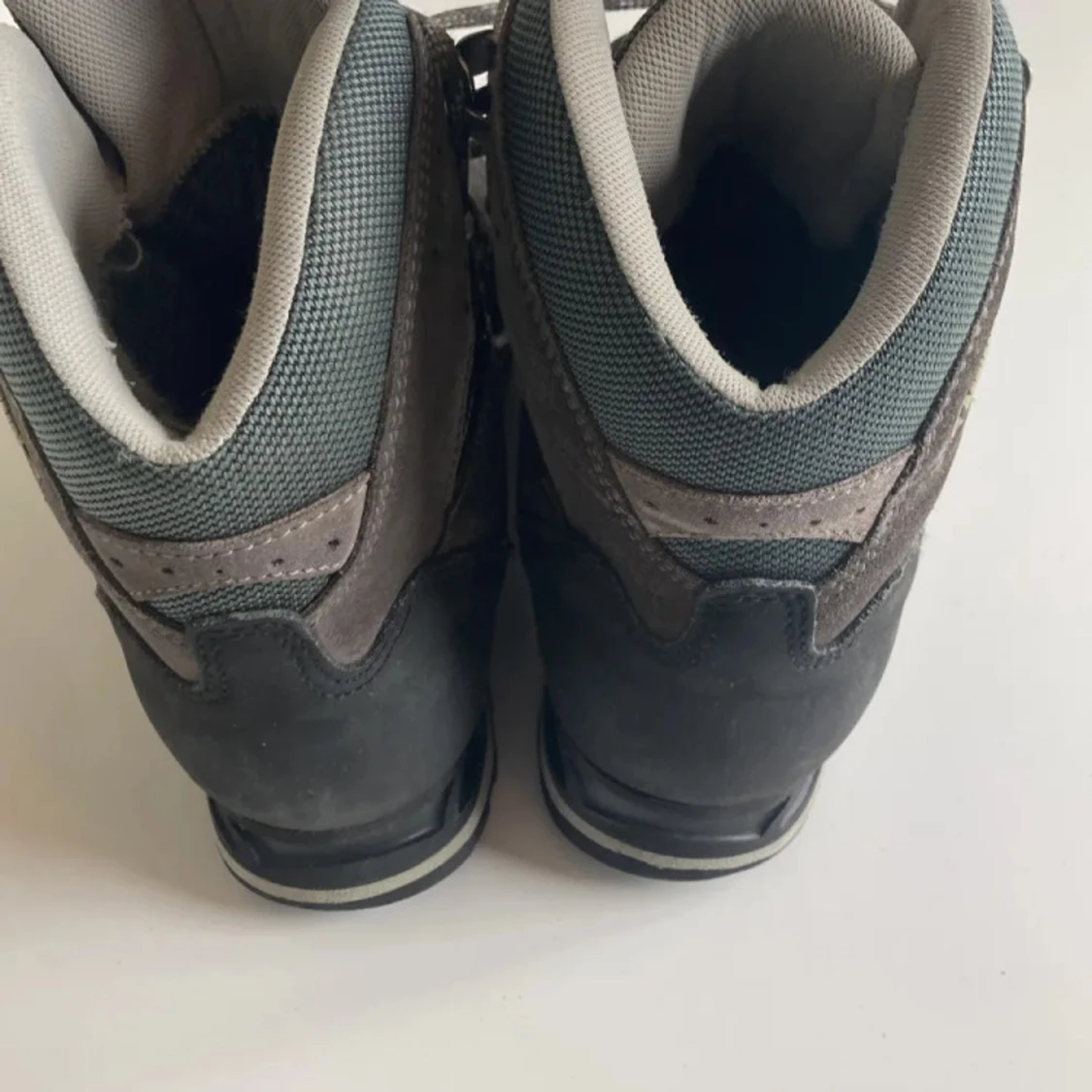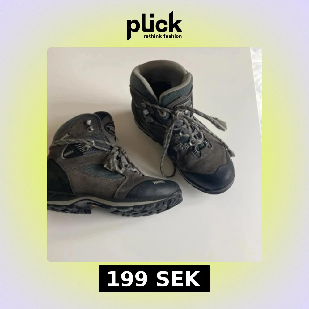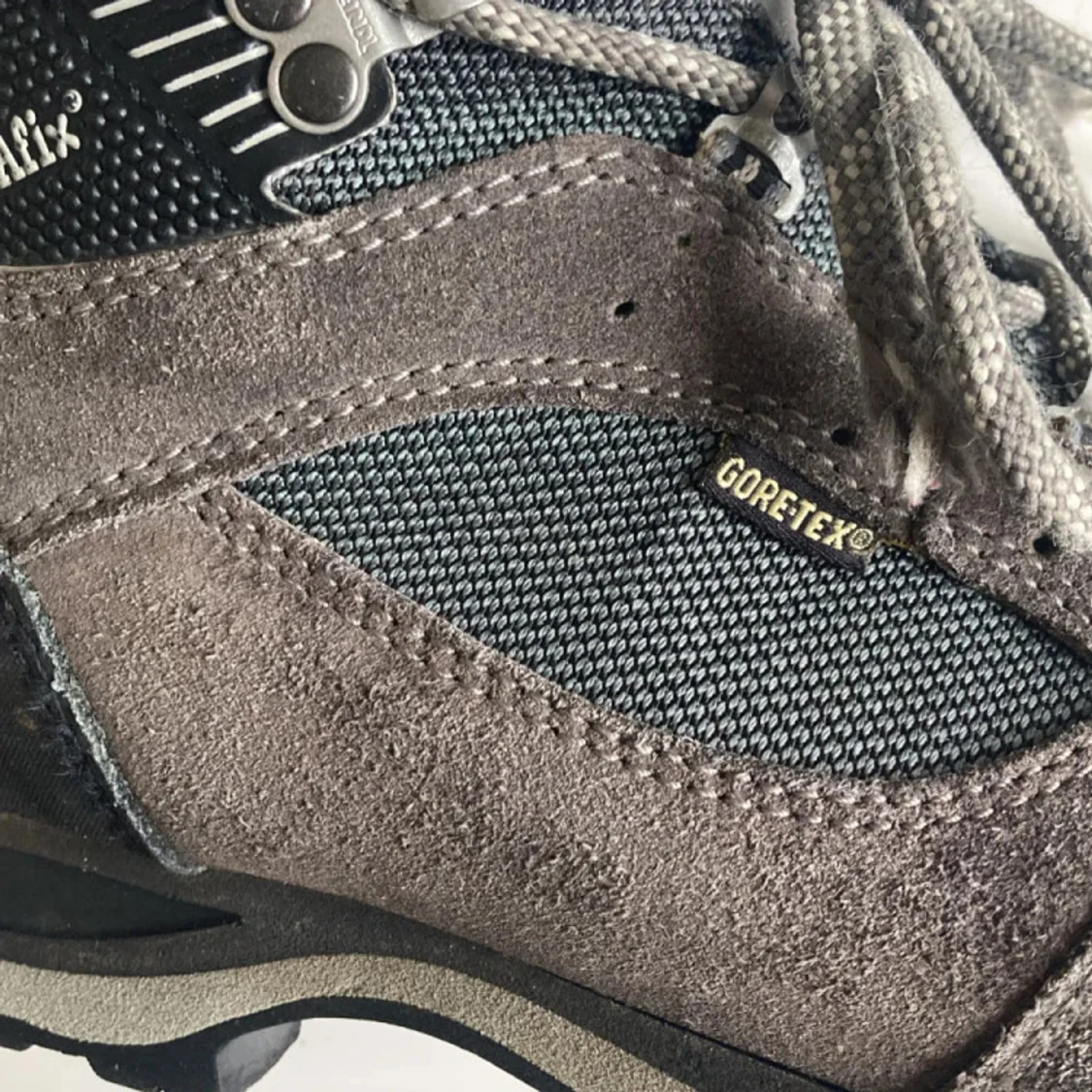 Stabila grå vandringskängor från Meindl med Gore-Tex-membran. Ovandel i mocka och slitstark textil, robust snörning och grov Vibram-sula för extra grepp. Perfekta för hiking och äventyr utomhus.