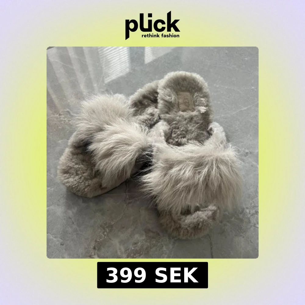 Supermjuka och fluffiga tofflor från UGG i ljusgrå färg. Hela skon är täckt av pälsimitation som ger en lyxig och mysig känsla. Perfekta att glida runt i hemma för en chill vibe. Öppen tå och platt sula för extra komfort.