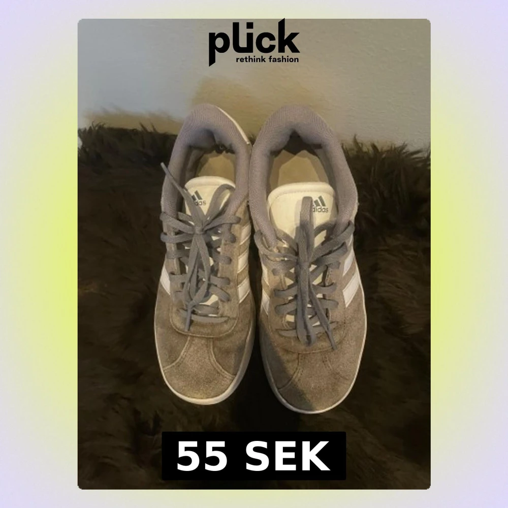 Snygga gråa Adidas sneakers med klassiska vita ränder på sidorna. Ovandelen är i mjuk mocka och skorna har grå snörning samt vit sula. Perfekta för en chill och sportig stil. Låg modell med rund tå och platt sula.
