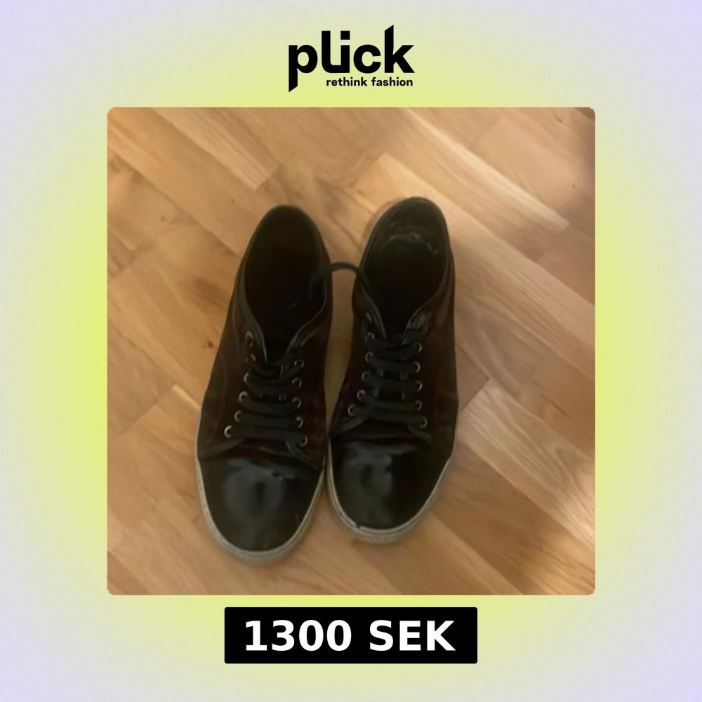 Snygga svarta sneakers från Lanvin med snörning och en glansig finish. Skorna har en robust sula och en klassisk design som passar perfekt för en stilren look.