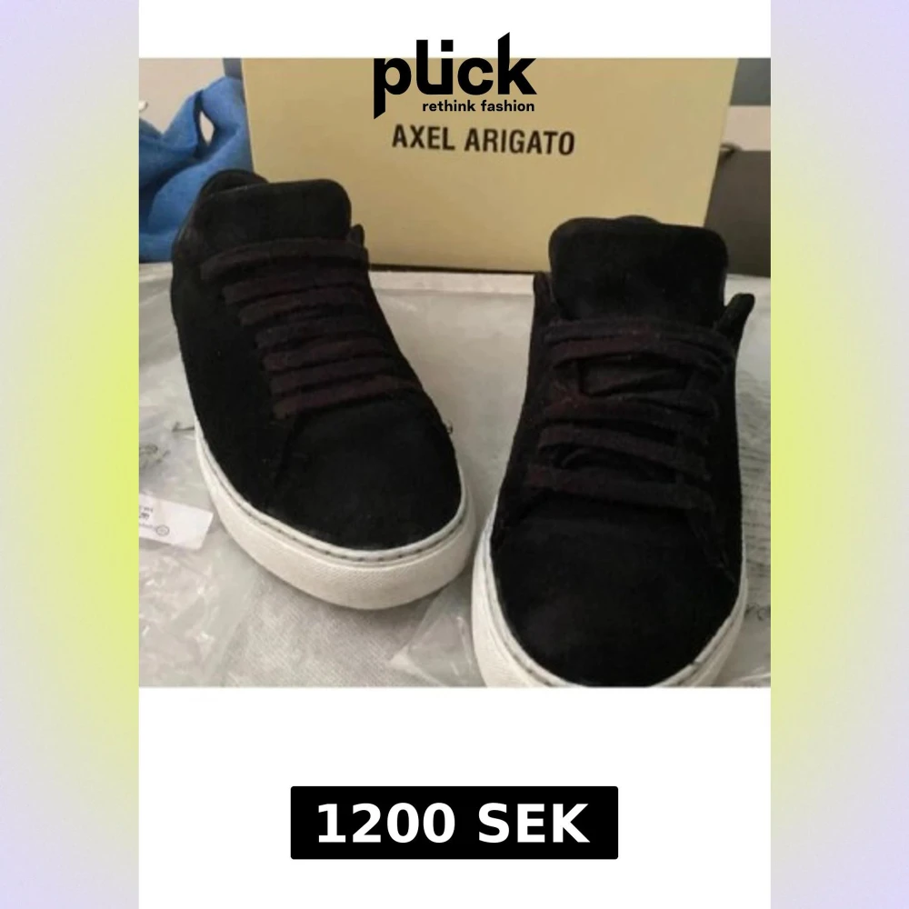 Snygga svarta sneakers från Axel Arigato med ovandel i mocka och detaljer i skinn. Skorna har vit platt sula och klassisk snörning. Perfekta för dig som gillar stilrena och minimalistiska sneakers med premiumkänsla. Funkar svin bra till stilen grisch osv, du får även med boxen