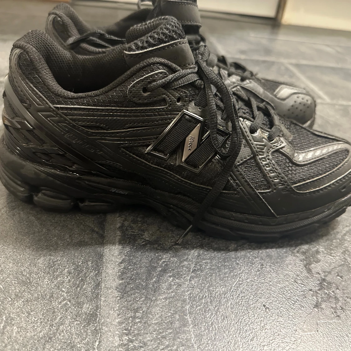 Säljer ett par svarta New Balance 9060 sneakers med chunky sula och coola detaljer i mesh och syntet. Skorna har snörning och den klassiska N-loggan i metallic på sidan. Perfekt för dig som gillar streetwear och sportig stil.