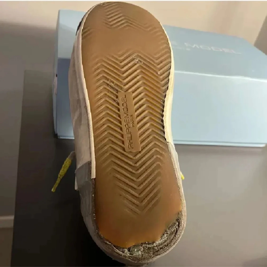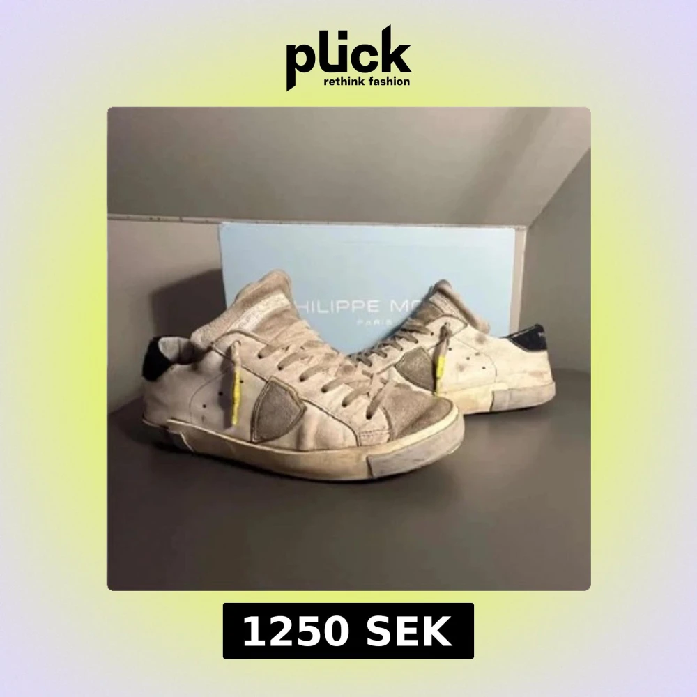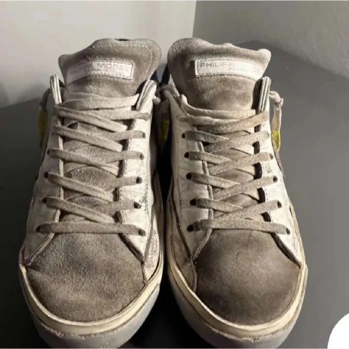 Säljer ett par sneakers från Philippe Model. Skorna har snörning och en avslappnad stil. De är slitna på vissa ställen och kan tvättas om ni vill.Helt okej Skick enligt mig riktigt feta och grish