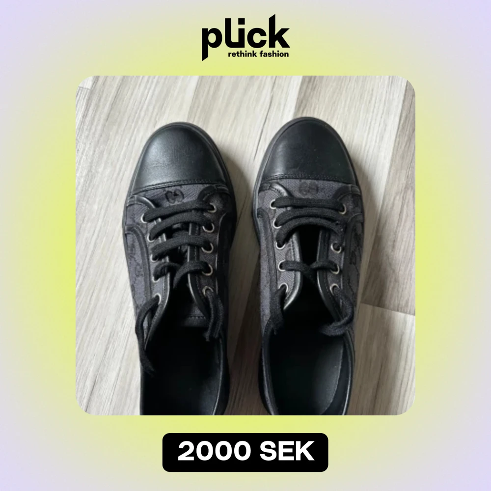 Gucci skor använda en gång pågrund av för små. Tyvärr inget kvitto då dem är köpta för länge sen.