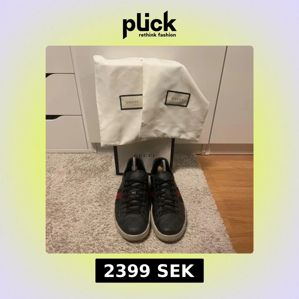 Säljer nu Gucci ace för ett bra pris men priset är ej hugget i sten. Det går att prata om priset. Dustbag, skor och låda följs med. Under sulan är lite sliten som ni ser på bild.