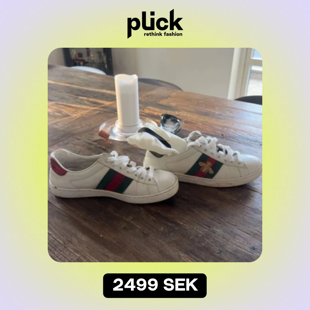 Tjena! Säljer dessa Gucci ace skor som är i storlek 41. De är i bra skick men har tyvärr inte boxen. Det som ingår är skopåsarna och skorna. Vid fler frågor är det bara att höra av sig!