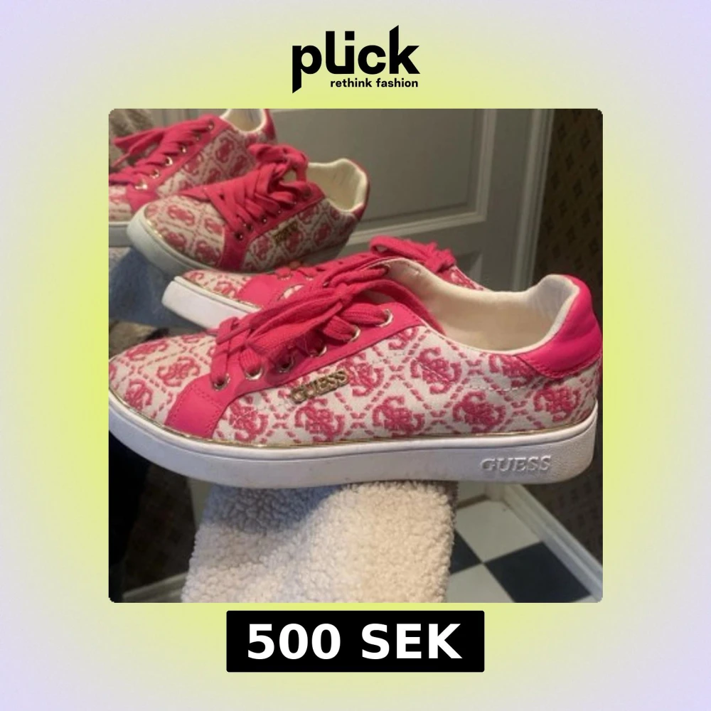 Snygga sneakers från Guess i vitt och rosa med logomönster över hela skon. Skorna har rosa snörning, detaljer i rosa skinnimitation och metallogo på sidan. Perfekta för dig som vill sticka ut med färg och mönster.