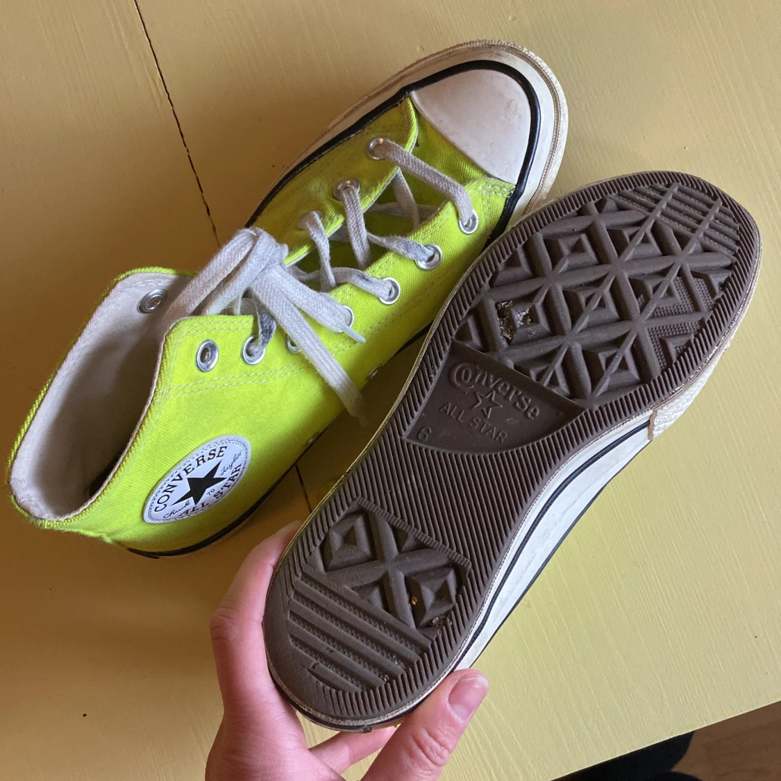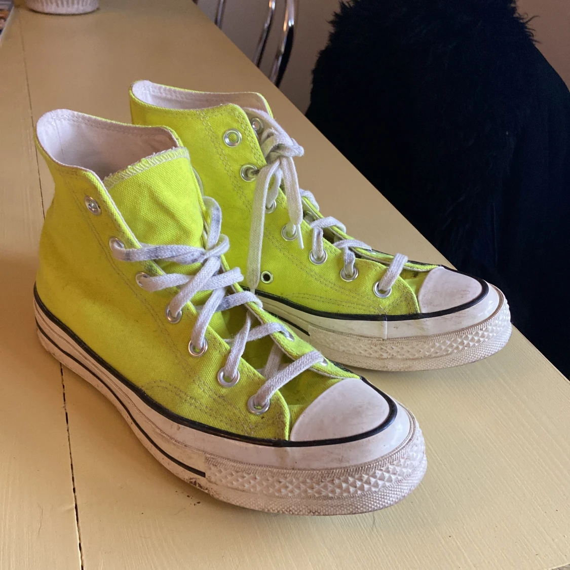Converse i storlek 39. (Chuck 70 High) Lime gula & använda väldigt sparsamt av mig. (Köpta 2021) 550kr fast pris