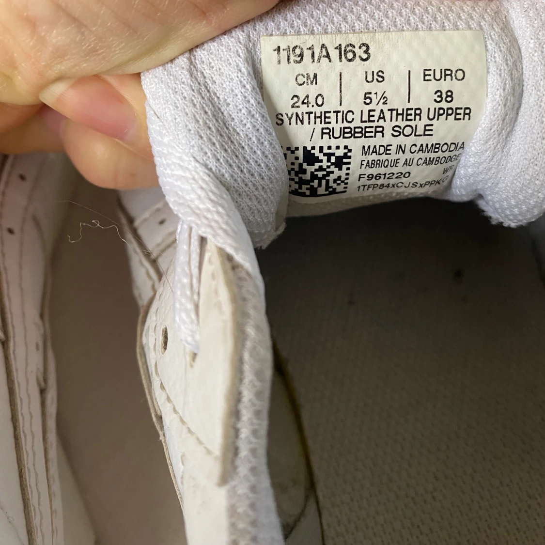 Säljer ett par klassiska fräscha vita Asics sneakers i storlek 38. De är nyputsade och snören tvättade! Ek använda mycket alls. Mer bilder kan skickas.