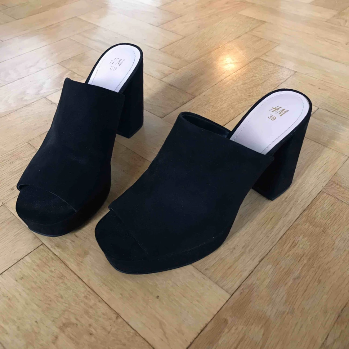 Svarta klackskorna från HM. Använda en gång.