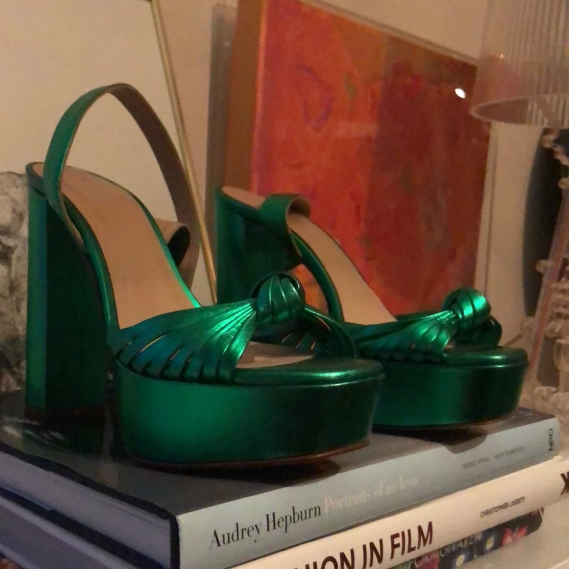 Gröna oanvända klackar i lackeffekt. Köparen står för ev frakt.