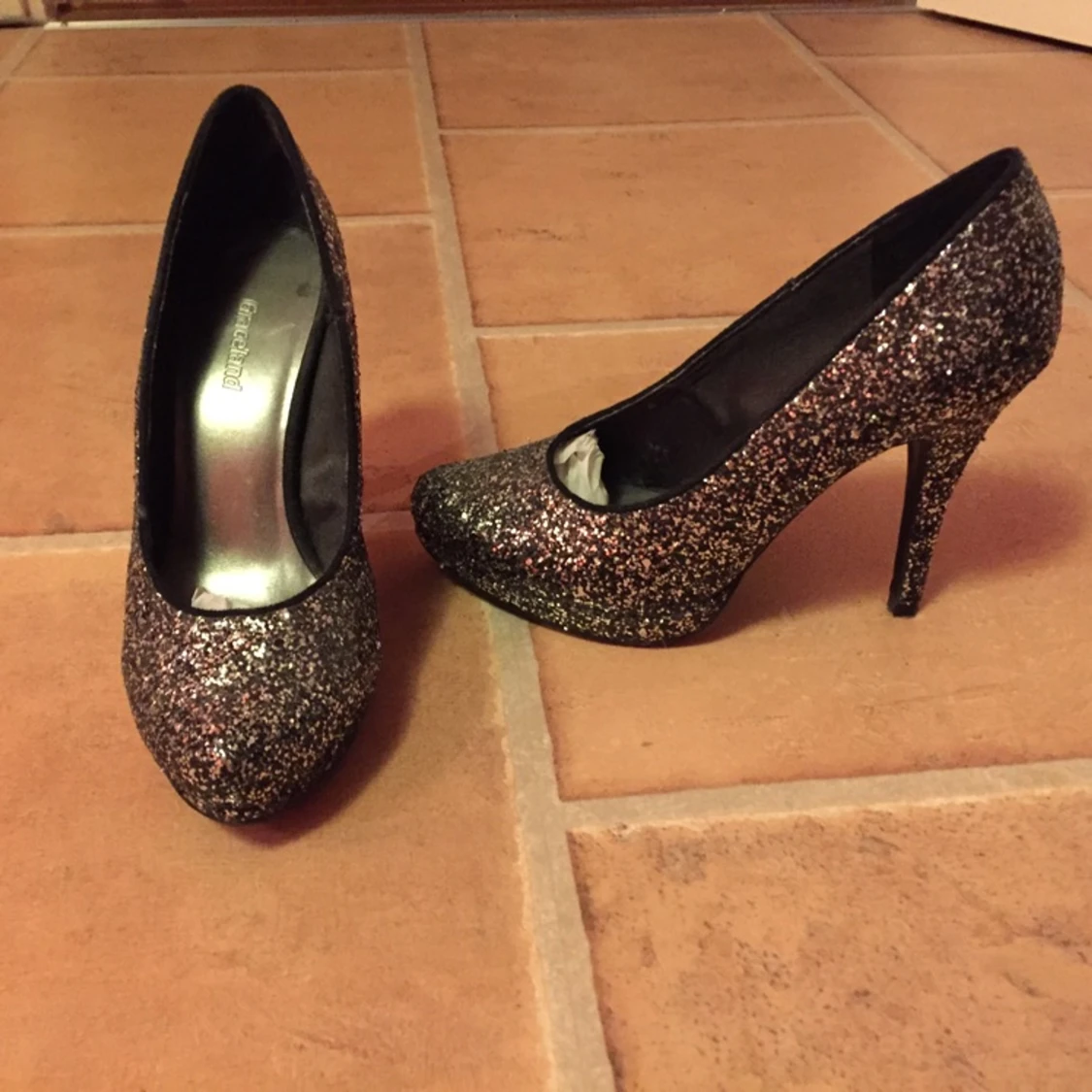 Klackskor som bara är använda en gång. Som nya! Kan mötas upp i Lkpg annars står köparen för frakten.
