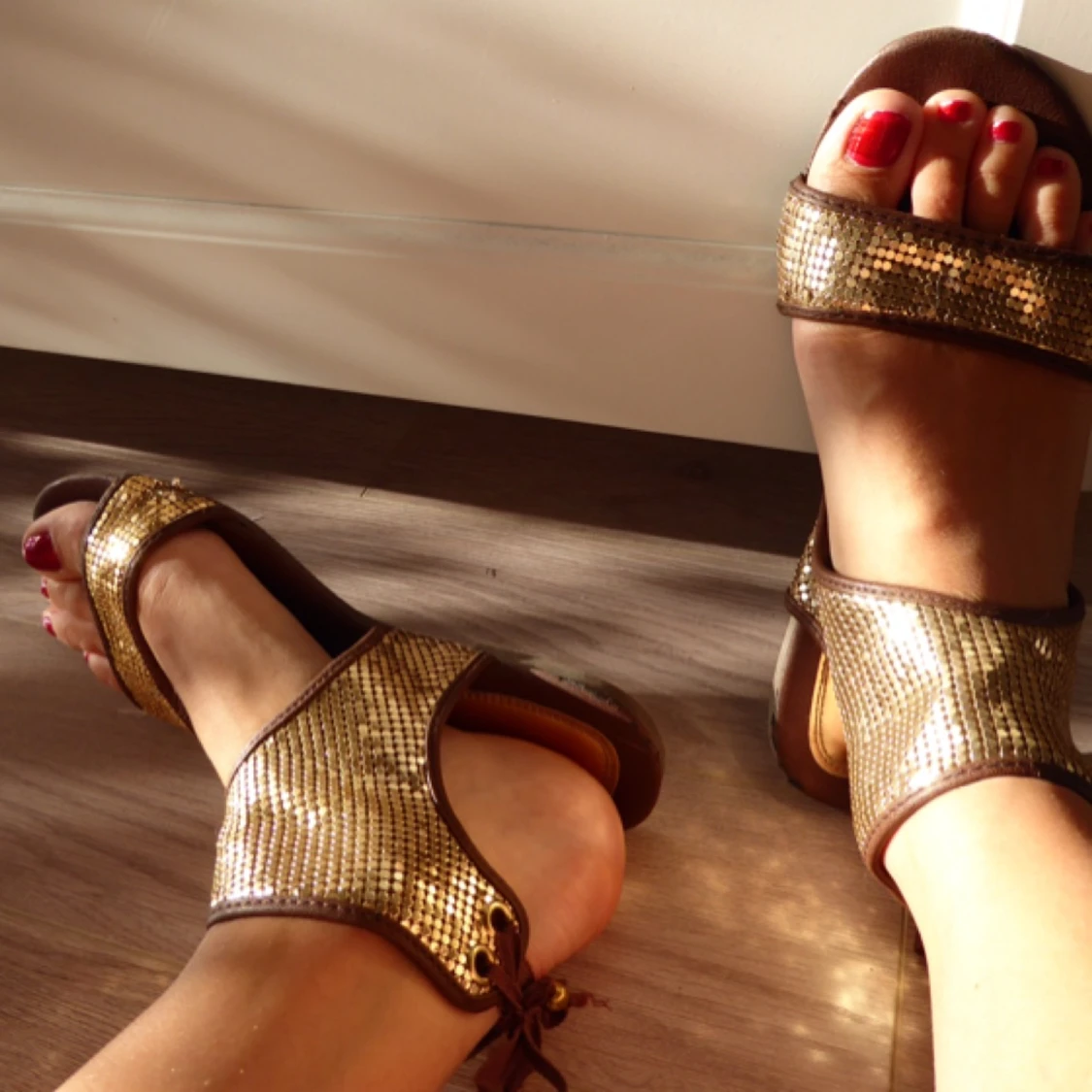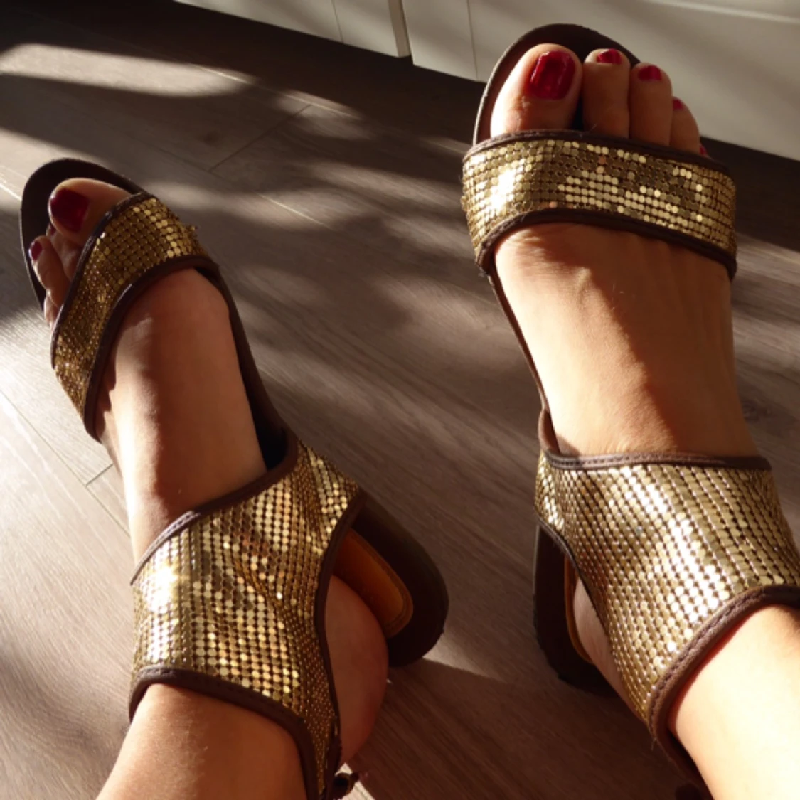 Guldiga sandaler från hm. Möter gärna upp för köp, alternativt skickar.