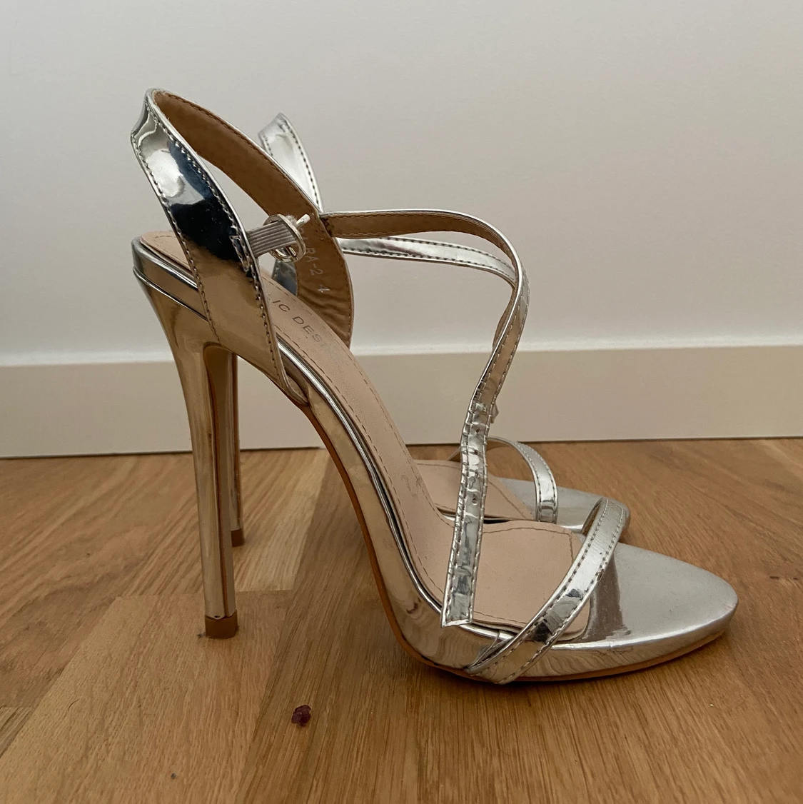 12cm klackar i färgen silver! Finns spår av användning, frakten ingår i priset🤍