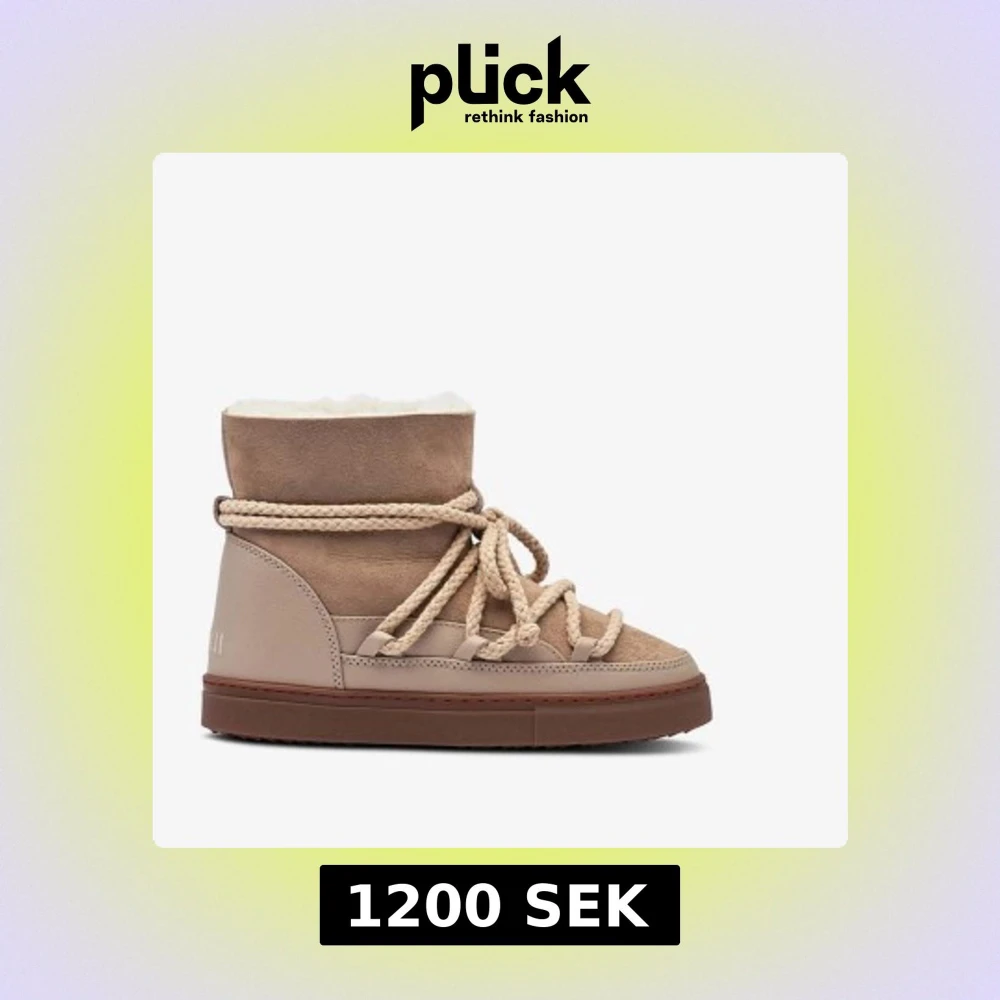 Snygga beige inuikii med grov snörning och platt sula. Skorna har en mix av mocka och skinn, samt en varm, fluffig insida. Perfekta för kalla dagar med sin höga modell och trendiga look.