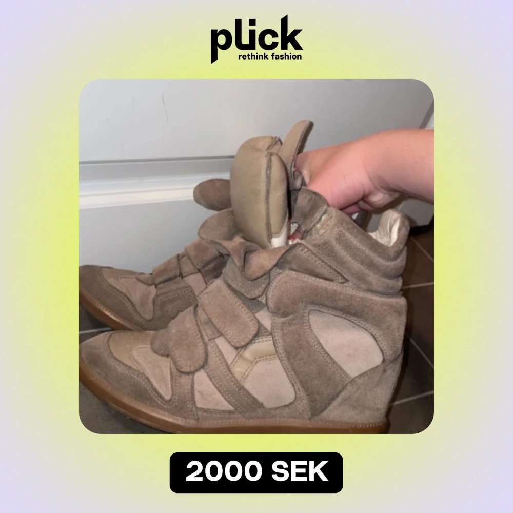 Jag säljer ett par isabel marant skor, säljer pga att dem inte kommer till så mycket användning. Jag har haft dem i mindre än 1 år men dem är väldigt slitna då jag köpte den av en tjej här på Plick. Dem är slitna i färgen men skorna har inga skador.