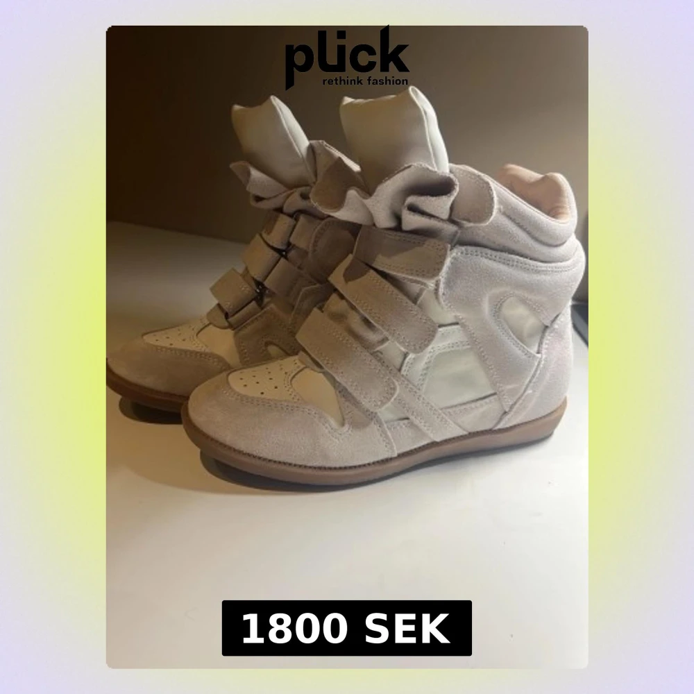 Säljer ett par beige Isabel Marant, skorna är i bra skick men på vänster skorn är det klippt på tungan (pga stor fläck). Tyvärr kommer ingen dustbag, shoebox, osv. Endast skorna. Pris kan diskuteras och bra pris för snabb köp.