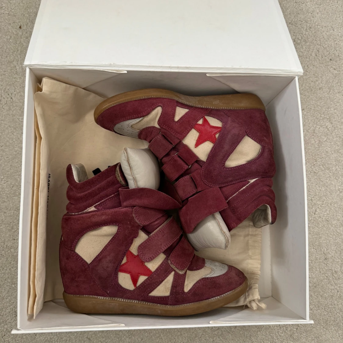 Så snygga isabel markant bekett skor i storlek 36 (passar mig som brukar ha 37)😊 Vinröd färg i modellen med stjärna som inte säljs längre! Så snygga och perfekt tills i höst!🤗 Dustbags och orginalbox tillkommer💕