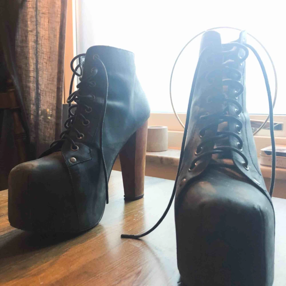 Balla platåskor från Jeffrey Campbell! Ett antal år på nacken, se bild 2. Därav priset!