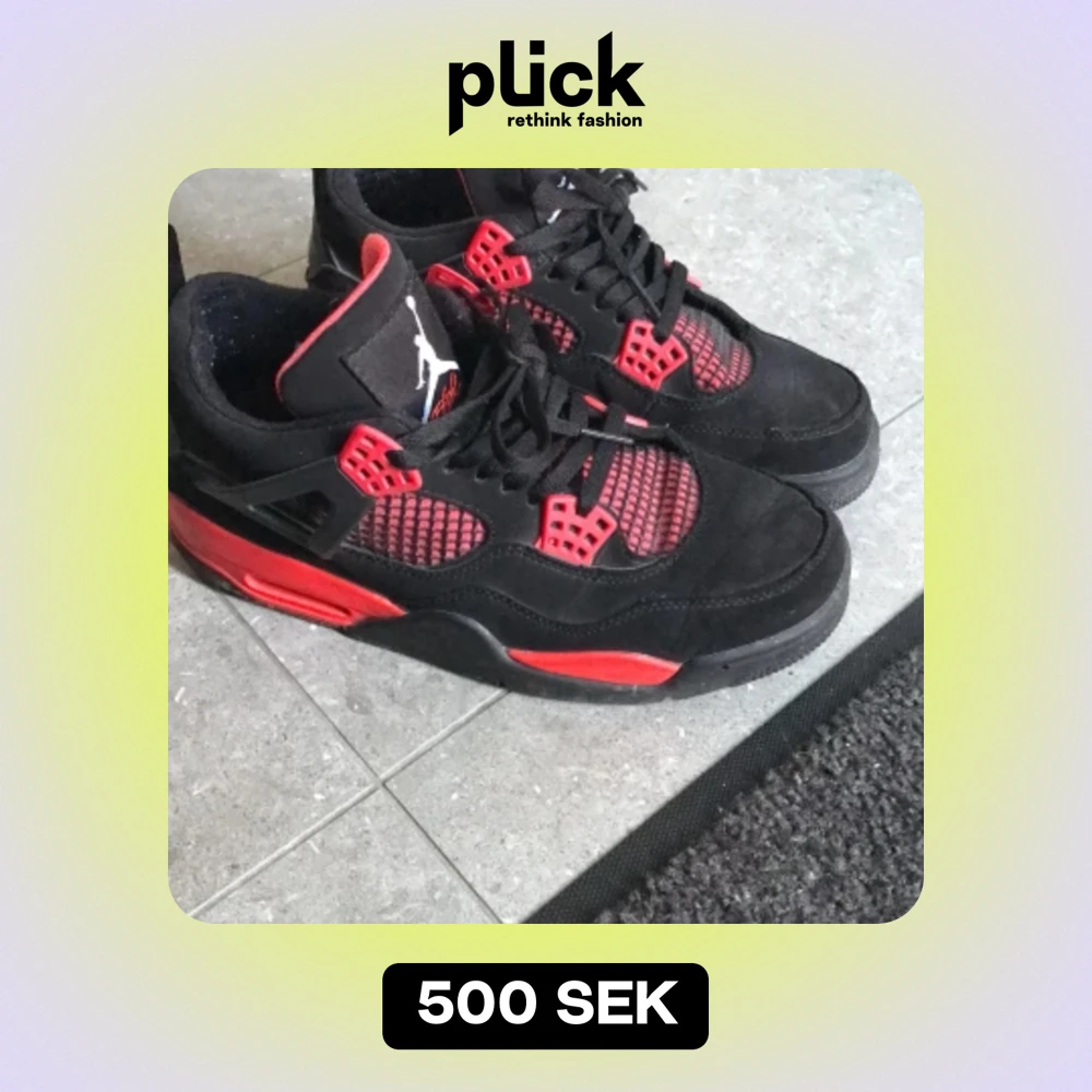Röda och svarta Jordan 4s. Säljer för dom inte kmr till användning.