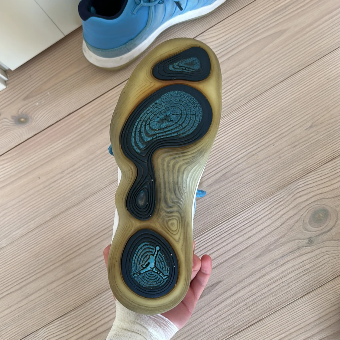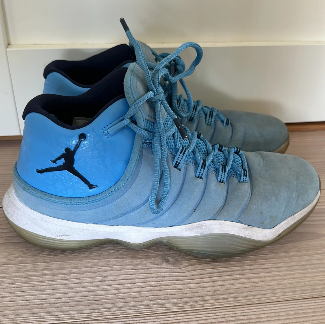 Basketsko från jordan, kan användas som sneakers, med lite kärlek så kan de ser riktigt fina ut igen. Gummit på bild tre på sulan är sprucket då de inte använts på länge. Ovansida i mocka.