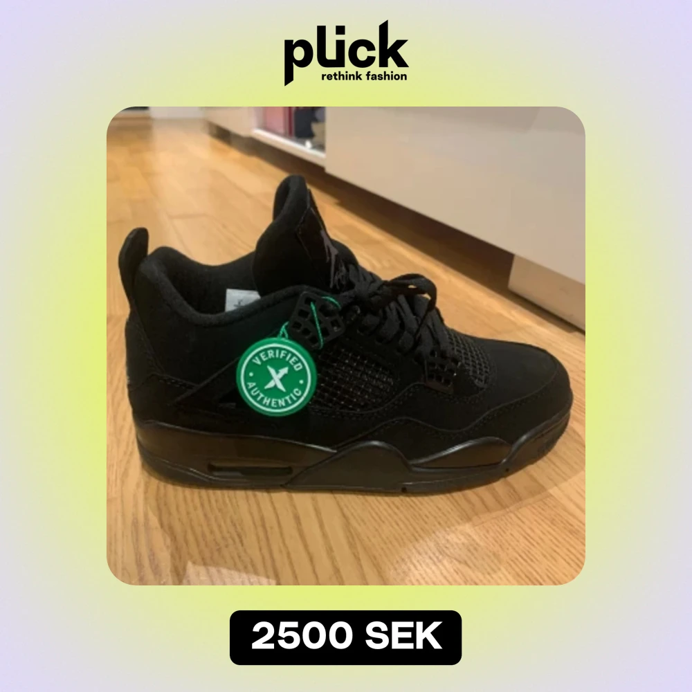 "Jag säljer mina Jordan 4 Black Cats som jag bara har använt i en vecka. De är i bra skick och ser helt nya ut. Kontakta mig om du är intresserad!" Pris kan diskuteras!!!