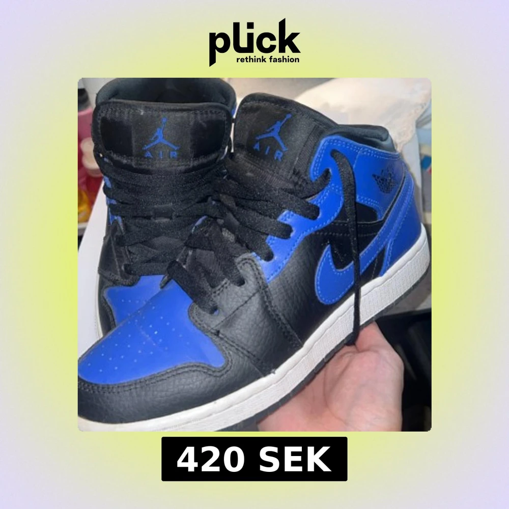 Nike Air Jordan 1 Mid i färgen Hyper Royal/Black. Skorna har svart och blått skinn. Skriv om ni undrar något💕