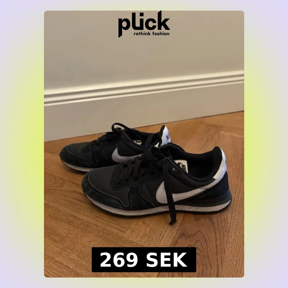 Jättesnygga sneakers ifrån märket Nike i svart med vita detaljer och vit häl. Skorna har snörning, rund tå och platt sula. Ovandelen är i mesh och mocka, vilket ger en skön och sportig känsla. De är klassiska, sköna och i bra material. De är i okej skick men lite slitna med små små fläckar som knappt syns, därför priset. De är i storlek 38 och ett perfekt basplag som passar allt och som är perfekt nu till våren. Skriv om funderingar, lämna gärna omdöme och priset kan diskuteras 😊