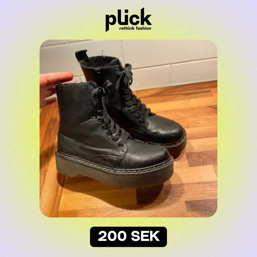 Säljer dessa coola Dr Martens inspirerade boots då de inte kommer till användning längre tyvärr! Fungerar till många väder och har en ball stil med den höga klacken! Stövlarna är använda men i gott skick utöver en liten slitning på insidan->Bild 3.