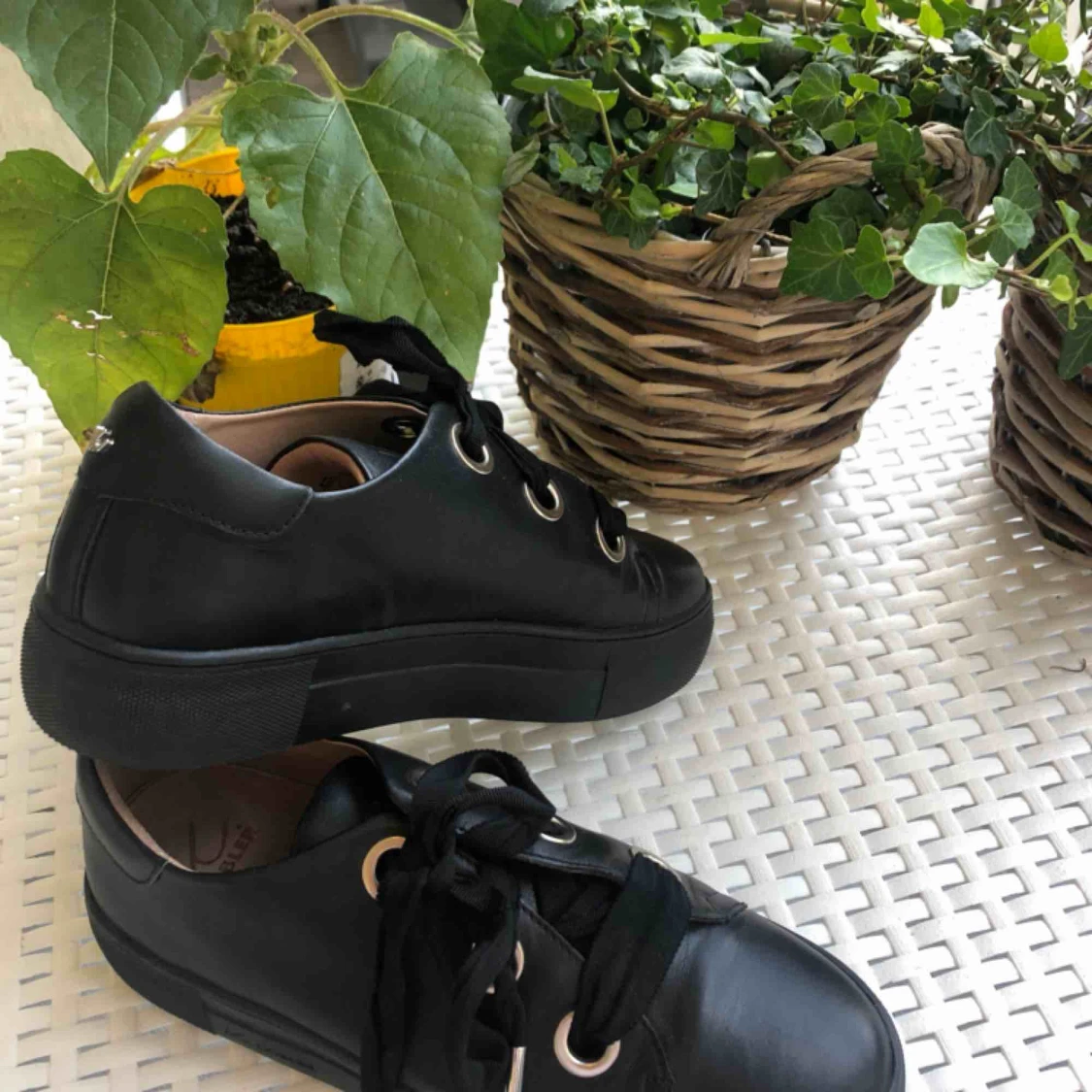 Helsvarta, oanvända skor i storlek 37 dammodell. Går att använda sommar, vår och höst. Skorna kommer från Kcobler och kostade 1000 kr original pris. Köparen står för frakten. ❤️